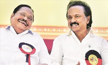 The DMK treasurer and senior leader Duraimurugan had heaped praises on the newly elected DMK president MK Stalin. During his speech, Duraimurugan said "Respected leader MK Stalin, I am happy that I have lived this long to call you as my leader. When I had come to your house first, you were a small kid, wearing half trousers, and now you have risen to be my leader. This makes me happy and extremely happy that I don't get words to speak at the moment. Though I have spoken in many meetings and stages, today all that I get is tears.