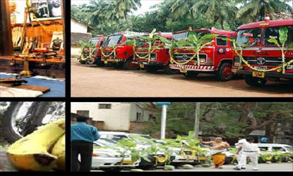 Historically Ayudha Pooja was meant to worship weapons but in its present form all sort of instruments are worshiped on the very same day. In South India it is a day when craftsmen worship their tools and instruments similar to Vishwakarma Pooja in other parts of India. In its modern form Ayudha Pooja has become Vahana Pooja when people worship their vehicles including cars, scooters, and motor bikes. During Vahana Pooja all sort of vehicles, which are in use, are decorated with vermilion, garlands, mango leaves and banana sapling and worshiped.