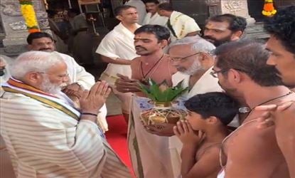 प्रचंड बहुमत से जीत हासिल हासिल कर दुबारा से सत्ता में आने के बाद लगातार दूसरी बार देश के प्रधानमंत्री बनने के बाद नरेंद्र मोदी इन दिनों अपनी पहली यात्रा पर हैं। बताते चलें की प्रधानमंत्री आज शनिवार को केरल पहुंचे हैं और पहले से तय कार्यक्रम के अनुसार पीएम मोदी केरल के त्रिसूर आए हुए है। असल में आपकी जानकारी के लिए बताते चलें की पीएम ने आज यहां पर प्रसिद्ध गुरुवायूर मंदिर में विशेष पूजा की और फिर इसके बाद पीएम मोदी बीजेपी कार्यकर्ताओं को भी संबोधित करेंगे। प्रधानमंत्री के दौरे के कारण शहर में सुरक्षा के काफी कड़े प्रबंध किए गए थे, पीएम मोदी के पूजा करने के दौरान आम जनता के लिए मंदिर का द्वार सुबह 9 से 11 बजे के बीच बंद कर दिया गया था। इस दौरान पीएम मोदी का भव्य स्वागत भी किया गया। पुजा के दौरान पीएम ने थुलाभारम रस्म अदा करने की इच्छा जताई थी, जिसके बाद मंदिर प्रशासन ने 112 किलो कमल के फूलों का इंतेजाम किया था जिससे प्रधानमंत्री को तौला भी गया।