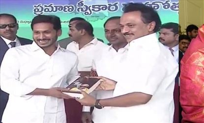 చెన్నై నుండి అదే పనిగా ఎంకె స్టాలిన్ విజయవాడకు వచ్చారు. కార్యక్రమంలో పూర్తిగా
