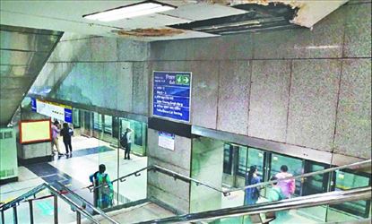 करोड़ों की लागत से तैयार विश्वस्तरीय दिल्ली मेट्रो के स्टेशनों की छतों से पानी टपकने लगा है। पानी से प्लेटफार्म पर हो रही फिसलन से यात्रियों को खासी परेशानी होती है। आलम यह है कि दिल्ली के सबसे व्यस्ततम मेट्रो स्टेशन राजीव चौक पर जल रिसाव के कारण एक सीढ़ी काफी दिनों से बंद है। इसी तरह कश्मीरी गेट मेट्रो स्टेशन में पानी टपकने से यात्री परेशान हैं। हैरानी की बात यह है कि संबंधित स्टेशनों के प्रबंधकों की ओर से इस संबंध में डीएमआरसी प्रबंधन को सूचित भी नहीं किया गया है।
