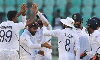 तर नाईट वॉचमन डेन पीटला जाडेजाने शून्यावर तंबूत पाठवल्यामुळे भारताने सामन्यावर पकड मिळवली आहे.पहिल्या कसोटी सामन्यात भारताने सलामीवीर मयांक अग्रवालचे द्विशतक (२१५) आणि रोहित शर्माचे दीडशतक (१७६) यांच्या दमदार खेळीच्या जोरावर धावांचा रतीब रचला. भारतीय फलंदाजांनी पहिल्या दिवशी बिनबाद २०२ धावांपर्यंत मजल मारल्यानंतर दुसऱ्या दिवशीही आक्रमक सुरुवात केली. रोहित शर्मा आणि मयांक अग्रवाल यांनी आफ्रिकन गोलंदाजांवर प्रहार करत दमदार खेळी केली.