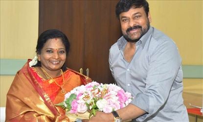 சிரஞ்சீவி நடித்த 151வது படமான சைரா நரசிம்ம ரெட்டி 2ஆம் தேதி வெளியாகி, பெரும் வரவேற்பை பெற்றுள்ளது. இந்த படம் தெலுங்கானா, ஆந்திர மாநிலங்களில் வசூலை வாரி குவித்து வருவதாக தகவல் வெளியாகி உள்ளது.இந்நிலையில் தெலுங்கானா மாநில ஆளுநராக பதவி ஏற்ற தமிழிசை சௌந்தரராஜன் அவர்களை சிரஞ்சீவி நேரில் சந்தித்து தசரா வாழ்த்து தெரிவித்துக் கொண்டார்.சிரஞ்சீவி நடித்த 151வது படமான சைரா நரசிம்ம ரெட்டி 2ஆம் தேதி வெளியாகி, பெரும் வரவேற்பை பெற்றுள்ளது. இந்த படம் தெலுங்கானா, ஆந்திர மாநிலங்களில் வசூலை வாரி குவித்து வருவதாக தகவல் வெளியாகி உள்ளது.இந்நிலையில் தெலுங்கானா மாநில ஆளுநராக பதவி ஏற்ற தமிழிசை சௌந்தரராஜன் அவர்களை சிரஞ்சீவி நேரில் சந்தித்து தசரா வாழ்த்து தெரிவித்துக் கொண்டார்.