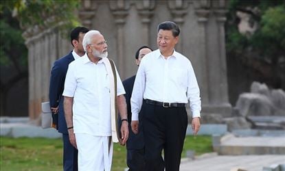 पीएम नरेंद्र मोदी के साथ दूसरी अनौपचारिक बैठक के लिए चीन के राष्ट्रपति शी जिनपिंग शुक्रवार को महाबलीपुरम पहुँच चुके हैं। पीएम मोदी ने यहां चीन के राष्ट्रपति शी जिनपिंग के स्वागत के लिए पारंपरिक तमिल वेशभूषा में पहुंचे। उन्होंने मामल्लपुरम में जिनपिंग को अर्जुन तपस्या स्थली, पंच रथ और तट मंदिर के दर्शन कराए और इन स्थलों के बारे में भी जानकारी दी।