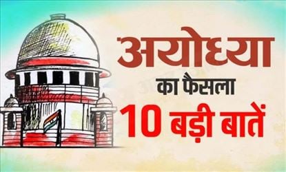 अयोध्या विवाद मामले में सुप्रीम कोर्ट ने शनिवार को अपना ऐतिहासिक फैसला सुना दिया। पांच जजों की संवैधानिक पीठ ने 40 दिनों की सुनवाई के बाद यह फैसला दिया। पीठ ने विवादित जमीन पर रामलला के हक में निर्णय सुनाया। आइए जानते हैं सुप्रीम कोर्ट के फैसले की 10 बड़ी बातें।