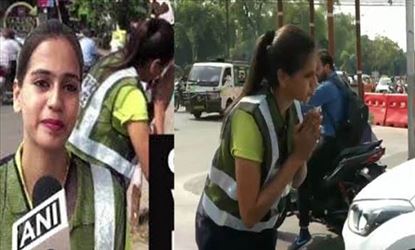 #WATCH Madhya Pradesh: An MBA student Shubi Jain volunteering to manage traffic on roads in indore in her unique way, to spread awareness about traffic norms & regulations. pic.twitter.com/hBZd0bt3C5