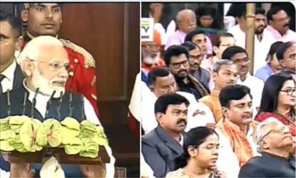 प्रधानमंत्री नरेंद्र मोदी ने सत्र को संबोधित करते हुए कहा कि हमारा संविधान हमारे लिए सबसे बड़ा और पवित्र ग्रंथ है। हमारा संविधान इतना व्यापक इसलिए है, क्योंकि उसने बाहर के प्रकाश के लिए अपने खिड़कियां खुली रखी हैं। पीएम मोदी ने कहा कि अपनी गलतियों की वजह से हमने आजादी भी खोई है और गणतंत्र का चरित्र भी खो दिया था। बाबा साहब ने पूछा था कि हमें आजादी भी मिल गई, गणतंत्र भी हो गए। क्या हम इसे बनाए रख सकते हैं? क्या अतीत से हम सीख ले सकते हैं? बाबा साहब अगर होते तो उनसे अधिक प्रसन्नता शायद ही किसी को होती। भारत ने इतने वर्षों में उनके सवालों का उत्तर दिया और अपने लोकतंत्र को आर समृद्ध किया है। पीएम ने कहा कि संविधान की भावना अटल और अडिग रही है। अगर इसके साथ कभी कुछ इस तरह के प्रयास हुए भी हैं तो देशवासियों ने इसे असफल किया है। उन्होंने कहा कि मैं 130 करोड़ भारतीयों के सामने नतमस्तक हूं, जिन्होंने लोकतंत्र के प्रति आस्था को कम नहीं होने दिया और संविधान को पवित्र ग्रंथ माना। हमारे संविधान की मजबूती के कारण ही हम एक भारत-श्रेष्ठ भारत की दिशा में आगे बढ़ पाए हैं। हमने तमाम सुधार संविधान की मर्यादा में रहकर किए हैं।