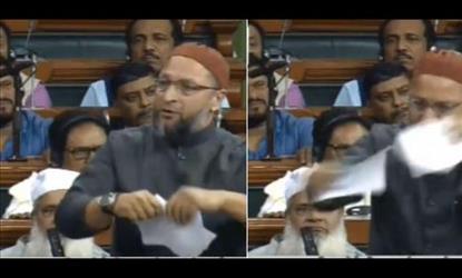 नयी दिल्ली। एआईएमआईएम के प्रमुख असदुद्दीन ओवैसी ने सोमवार को लोकसभा में नागरिकता संशोधन विधेयक का विरोध करते हुए इस विधेयक की प्रति फाड़ दी । इसका कड़ा विरोध करते हुए केंद्रीय मंत्री रविशंकर प्रसाद ने कहा कि यह संसद का अपमान है।