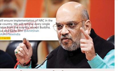 অমিত শাহের সেই টুইটটি মাস আটেক আগের। লোকসভা নির্বাচনের প্রচার অভিযান তখন তুঙ্গে। গত ১১ এপ্রিল দার্জিলিঙে সভা করতে এসেছিলেন অমিত শাহ। সেখানে দেশ জুড়ে এনআরসি করার কথা সজোরে ঘোষণা করেছিলেন তিনি। জানিয়েছিলেন, বৌদ্ধ, হিন্দু এবং শিখ শরণার্থী ছাড়া সমস্ত অনুপ্রবেশকারীকে দেশ থেকে বিদায় করা হবে। এর পর বিজেপির টুইটার হ্যান্ডলে অমিত শাহের সেই মন্তব্য ফলাও করে পোস্ট করা হয়। “আমরা সারা দেশে এনআরসি রূপায়ণ করবই। হিন্দু, বৌদ্ধ এবং শিখ ছাড়া প্রত্যেক অনুপ্রবেশকারীকে আমরা তাড়াব”— অমিতের এই উক্তির পাশে #নমোফরনিউইন্ডিয়া লিখে অনলাইন প্রচার চালিয়েছিল বিজেপি।