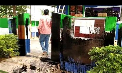 జగన్మోహన్ రెడ్డి తీసుకున్న నిర్ణయంతో తమకు తీవ్ర అన్యాయం జరుగుతుందని అందుకే కడుపు మండి వైసిపి రంగులను తొలగించాం అని రైతులు ఆగ్రహం వ్యక్తం చేశారు. అక్కడ అడ్డుకోవడానికి వచ్చిన పంచాయతీ కార్యాలయం సిబ్బందిని మీ పని మీరు చేసుకోండి మా పని మేము చేసుకుంటాం అంటూ అలాగే రంగులు వేశారు. మాకు అన్యాయం చేసిన వైసీపీ ప్రభుత్వ రంగులు ఈ పంచాయతీ కార్యాలయానికి ఉండడానికి వీలు లేదు అంటూ పంచాయతీ కార్యాలయానికి మొత్తం నల్ల రంగును వేసారు రైతులు. దీంతో రాయపూడి లో ఉద్రిక్త వాతావరణం చోటు చేసుకుంది. అయితే పంచాయతీ కార్యాలయానికి వైసిపి రంగులు తొలగించి నల్ల రంగులు వేస్తున్న వారిని అదుపులోకి తీసుకునేందుకు పోలీసులు ప్రయత్నించినప్పటికీ వైసిపి కార్యకర్తలు మాత్రం వారిని అడ్డుకున్నారు. దీంతో వారిని అదుపులోకి తీసుకోలేకపోయారు పోలీసులు. రాష్ట్ర రాజధాని ఇక్కడ లేనప్పుడు ఇక్కడ ఇంకా వైసిపి రంగులు ఎందుకు అంటూ ఆగ్రహం వ్యక్తం చేస్తున్నారు రాయపూడి గ్రామస్తులు.