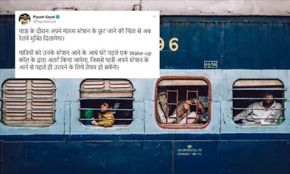 रेल मंत्री पीयूष गोयल ने ट्वीट किया, "यात्रा के दौरान अपने गंतव्य स्टेशन के छूट जाने की चिंता से अब रेलवे मुक्ति दिलायेगा। यात्रियों को उनके स्टेशन आने के आधे घंटे पहले एक Wake-up कॉल के द्वारा अलर्ट किया जायेगा, जिससे यात्री अपने स्टेशन के आने से पहले ही उतरने के लिये तैयार हो सकेंगे।"