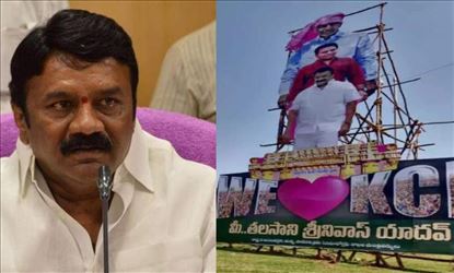 हैदराबाद। तेलंगाना के पशु संवर्धन मंत्री तलसानी श्रीनिवास यादव को जीएचएमसी ने पांच हजार रुपये का जुर्माना लगाया है। मुख्यमंत्री केसीआर के जन्मदिन के अवसर पर नेकलेस रोड सर्कल के निकट अवैध रूप से बड़ा कटआउट लगाया गया। कट आउट पर 'हैप्पी बर्थडे सर... वुई लव केसीआर' लिखा हुआ है। कट आउट पर मंत्री तलसानी का नाम शुभेच्छुक के तौर पर लिखा गया।