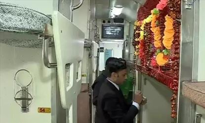 దేశంలో మూడో ప్రయివేట్ రైలు అయిన కాశీ మహాకాళ్ ఎక్స్ప్రెస్ను ప్రధాని మోదీ ఆదివారం ప్రారంభించిన సంగతి తెలిసిందే. వారణాసి-ఇండోర్ నగరాల మధ్య ప్రయాణించే ఈ రైలు ద్వారా మూడు జ్యోతిర్లింగాలు.. ఓంకారేశ్వర్, మహాకాళేశ్వర్, కాశీ విశ్వనాథ్లను దర్శించుకోవచ్చు. ఈ రైల్లో బి5 కోచ్ లో 64వ నంబర్ సీటును ఓ చిన్నపాటి గుడిగా మార్చేశారు. 64వ నంబర్ సీటును మహా శివుడికి రిజర్వ్ చేశారు. దేవుడి ఫొటోలు, పూలతో ఆ బెర్త్ను అందంగా అలకరించారు. ఈ విషయాన్ని నార్త్ రైల్వే అధికార ప్రతినిధి దీపక్ కుమార్ పీటీఐతో తెలిపారు.
