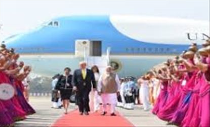 ahmedabad sources stated that US President donald trump and prime minister narendra modi on monday embarked on a 22-km- long roadshow from the ahmedabad international Airport. trump, who is on a two-day india visit, landed at the airport at 11.37 am. After the roadshow, the two leaders will address a gathering at the Namaste trump event at the Motera cricket stadium here this afternoon.