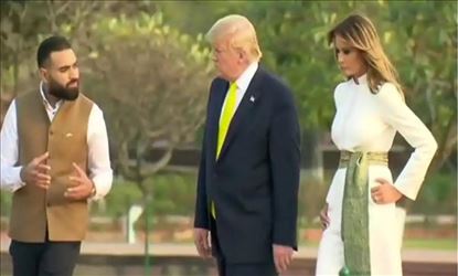 अमेरिकी राष्ट्रपति डोनाल्ड ट्रम्प और उनकी पत्नी मेलानिया ट्रम्प सोमवार को ताजमहल का दीदार करने के लिए आगरा पहुंचे। हवाई अड्डे पर अमेरिकी नेता का भव्य स्वागत किया गया, सैकड़ों कलाकारों ने ट्रम्प के स्वागत में उत्तर प्रदेश की समृद्ध संस्कृति को दर्शाते हुए शानदार प्रस्तुति दी। इस दौरान ट्रंप और उनकी पत्नी मेलानिया ट्रंप को ताजमहल का दीदार कराने के लिए एक गाइड भी मौजूद थे। गाइड का नाम नितिन सिंह है और वह आठ साल से गाइड का काम करते हैं। ट्विटर पर उनकी तस्वीर देखने के बाद एक यूजर ने लिखा कि यह तो युवा मोदी की तरह लग रहा है।