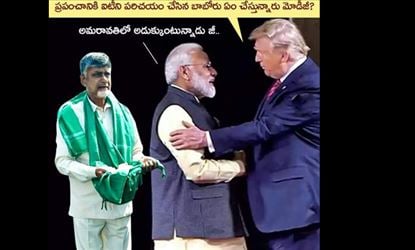 ఎక్కడ ..? ఎక్కడ ..? ప్రపంచానికే ఐటీని పరిచయం చేసిన ఆ ప్రపంచ మేధావి చంద్రబాబు ఎక్కడ ? నాకు స్వాగతం పలకడానికి వచ్చాడా లేదా ..? నేను అర్జంటుగా ఆయన్ను చూడాలి అంటూ ... ప్రపంచంలోనే అతి శక్తివంతమైన దేశంగా ఉన్న అమెరికా కు అధ్యక్షుడు అయిన డోనాల్డ్ ట్రంప్ ఆరా తీసాడు. అసలు అమెరికాలో నన్ను ఓడిస్తానని బాలకృష్ణ శపధం చేసిన ఆ బాబు ఎక్కడా ..? అంటూ భారత ప్రధాని మోదీని ట్రంప్ ఆరా తీయగా జోలె పట్టుకుని తిరుగుతున్నారని మోదీ చెప్పినట్టుగా సోషల్ మీడియాలో పెద్ద ఎత్తున జోకులు పేలుతున్నాయి. ప్రస్తుతం ఈ టాపిక్ సోషల్ మీడియాలో హల్చల్ చేస్తున్నాయి. చంద్రబాబు, మోదీ ట్రంప్ ఫోటోలను సోషల్ మీడియాలో పోస్ట్ చేసి రకరకాలుగా ట్రోల్ చేస్తున్నారు.