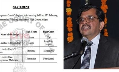 ഡൽഹി ഹൈക്കോടതി ചീഫ് ജസ്റ്റിസ് എസ്.മുരളീധറിനെ പഞ്ചാബ്-ഹരിയാന ഹൈക്കോടതിയിലേക്ക് സ്ഥലം മാറ്റിക്കൊണ്ടുള്ള വിജ്ഞാപനം കഴിഞ്ഞ ദിവസം അർധരാത്രിയോടെയാണ് പുറത്തിറങ്ങിയത്.സ്ഥലം മാറ്റാന് നേരത്തെയുള്ള കൊളീജിയം ശുപാര്ശ പ്രകാരമുള്ള വിജ്ഞാപനം കഴിഞ്ഞ ദിവസം അർധരാത്രിയോടെ സര്ക്കാർ പുറത്തിറക്കുകയായിരുന്നു.മുരളീധറിനെ പഞ്ചാബ്-
