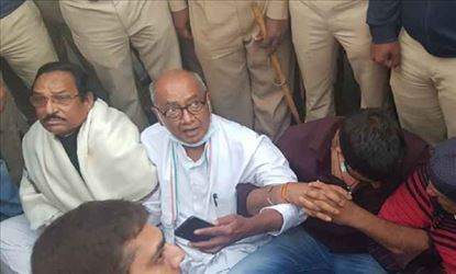 बुधवार को बेंगलुरु में वरिष्ठ दिग्विजय सिंह को प्रतिबंधात्मक हिरासत में लेने के तुरंत बाद, कांग्रेस नेता ने भूख हड़ताल की घोषणा की। सिंह को बेंगलुरु के एक होटल के बाहर पुलिस ने हिरासत में लिया था, क्योंकि उन्होंने शहर के एक रिसॉर्ट में 22 विद्रोही कांग्रेस विधायकों से मिलने की कोशिश की थी। सिंह के अलावा, शहर के उत्तरी उपनगर में अमृताहल्ली पुलिस स्टेशन में कर्नाटक प्रदेश कांग्रेस कमेटी के अध्यक्ष डीके शिवकुमार के साथ मध्य प्रदेश के नौ अन्य मंत्रियों और दो पार्टी विधायकों को भी हिरासत में लिया गया था।