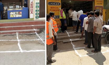 ఈ నేపథ్యంలో ఊరి పొలిమేర్లో కొంత మంది కాపలా ఉంటూ.. ఊర్లోకి ఎవ్వరినీ రానివ్వకుండా.. ఊర్లో వారు బయటకు పోనివ్వకుండా రూల్స్ పెట్టుకున్నారు. అంతే కాదు.. నిత్యావసర వస్తువుల కొనుగోలు కోసం దుకాణాల వద్దకు వస్తున్నవారి కోసం క్రమపద్ధతిలో ఒకరికొకరికి మధ్య దూరాన్ని కొనసాగిస్తున్నారు. కాగా, హైదరాబాద్లోని పలు దుకాణాల ముందు జనాలు మనిషికి మనిషికి మధ్య మీటరు దూరం ఉండేలా సామాజిక దూరాన్ని పాటిస్తున్నారు. ముగ్గు వేసి డబ్బాల్లో నిలబడుతూ సామాజిక దూరం పాటిస్తున్నారు.