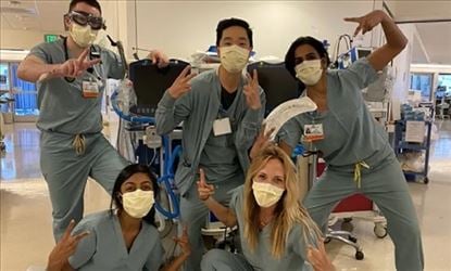 लॉस एंजिल्स, कैलिफोर्निया में रोनाल्ड रीगन यूसीएलए मेडिकल सेंटर की आईसीयू टीम हर बार अपने कोरोनोवायरस रोगियों को वेंटिलेटर से हटाने के बाद खुशी से डांस कर के जश्न मनाता है।