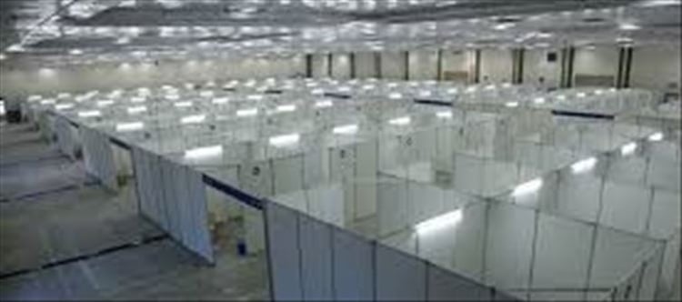 Rows and rows of white cubicles edged with fluorescent tube lights. These are not office cubicles in a large tech firm but isolation beds at a quarantine facility opened newly in Chennai. A large convention hall in chennai that has hosted several trade fairs so far has now been converted into a quarantine facility in the city. Greater chennai Corporation (GCC) Commissioner G Prakash on tuesday launched a 550-bed institutional quarantine ward at Nandambakkam Trade Centre Complex in Alandur neighbourhood of the city. Reportedly, the biggest in the country is a facility in jaisalmer that has 700-bedded capacity.