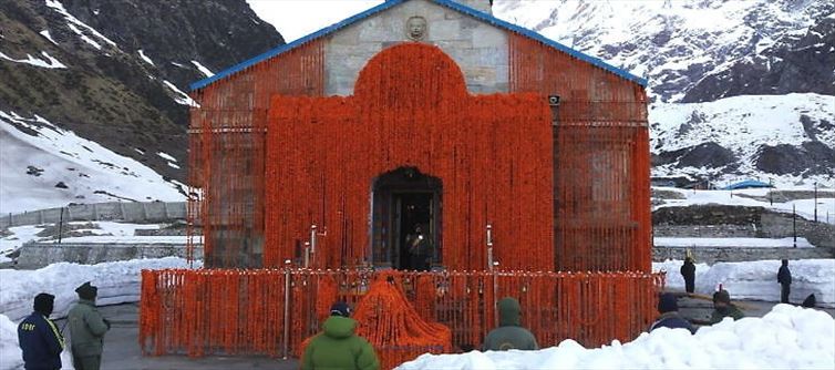 ऋषिकेश के दानदाता सतीश कालरा द्वारा 10 क्विंटल गेंदे, गुलाब और अन्य फूलों से सजाया गया, मंदिर अभी भी चार से छह फीट बर्फ की परत से ढका है। केदारनाथ धाम में सेना के बैंड पिछले वर्षों के विपरीत दरवाजे के उद्घाटन समारोह में शामिल नहीं हुए।