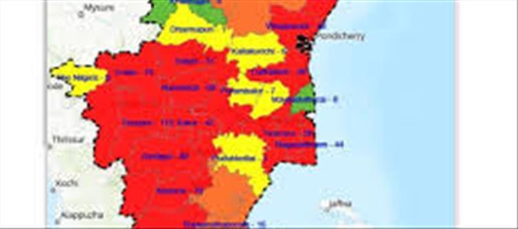 According to maps provided by the state health department, red zones are those which have over 15 cases or where the doubling time of cases is less than 4 days. Orange zones are those which have less than 15 cases or new cases in the last 14 days. And finally green zones are areas where there are no new cases in the last 28 days. Currently, the districts that fall under the red zone in tamil Nadu include tirunelveli (63) , tenkasi (38), Thoothukudi (27), Ramanathapuram (18), Virudhunagar (32), madurai (84), Theni (43), Dindigul (80), Tiruppur (112), Karur (42), coimbatore (141), Tiruchirapalli (51), thanjavur (5%), Tiruvarur (29), Nagapattinam (44), Cuddalore(28), Namakkal (61), salem (32), Villupuram (50), Chengalpattu (78), Tirupattur (18), Kancheepuram (26), Ranipet (40), Vellore (22). Tiruvallur (55) and chennai (906). Districts that fall under the orange zone are - Tiruvannamalai (15), Dharmapuri (1), Kallakurichi (9), Nilgiris (9), Erode (70), Perambalur (9), ariyalur (7), Pudukkottai (1), Sivagangai (12) and Kanyakumari (16).