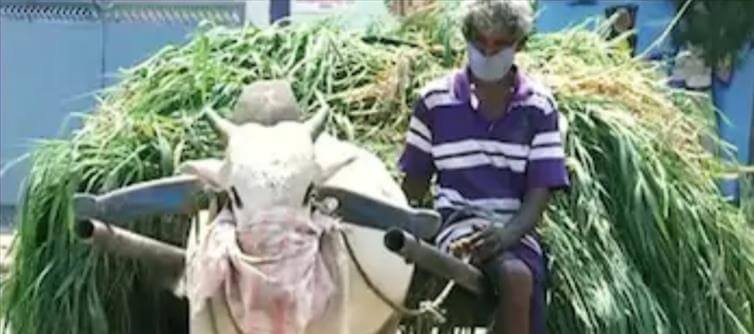 ఈ నేపథ్యంలో ఈ ప్రపంచ మహమ్మారి నుంచి తప్పించుకునేందుకు అక్కడి ప్రజలు ఎంతో జాగ్రత్తలు తీసుకుంటున్నారు. తమని తాము కాపాడుకోవడమే కాదు పాడిపశువులను కాపాడుకోవడానికి కూడా జాగ్రత్తలు తీసుకుంటున్నారు కర్నూలు వాసులు. కర్నూలు జిల్లాలో ఓ రైతు ఎడ్లబండిపై వెళ్తున్న ఫోటో ప్రస్తుతం సోషల్ మీడియాలో వైరల్ గా మారింది. ఎడ్ల బండిపై వెళ్తూ ఆ రైతు ముఖానికి మాస్కు పెట్టుకోవడమే కాదు... ఎద్దుకు కూడా మాస్కు కట్టాడు. తన దగ్గర ఉండే టవల్ తో ఎద్దుకు ఒక మాస్క్ కట్టాడు రైతు. కర్నూలు నగరంలోని ఈ ఘటన వెలుగులోకి రావడం గమనార్హం. జంతువులకు కూడా కరోనా వైరస్ సోకుతుంది అని టీవీ లో అప్పుడప్పుడు వార్తలు వస్తున్న నేపథ్యంలో ఇలాంటి జాగ్రత్తలు తీసుకున్నట్లు తెలుస్తుంది.