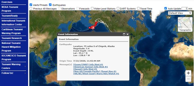 అమెరికాను ఆనుకుని ఉన్న మహాసముద్రంలో 7.4 రిక్టర్ స్కేలు పరిమాణంలో భూకంపం వచ్చింది.. దీని కారణంగా అమెరికాలోని అలస్కా ప్రాంతానికి సునామీ ప్రమాదం ఉందని ఆ దేశ సముద్ర, వాతావరణ శాఖ హెచ్చరికలు జారీ చేసింది. సముద్రంలో భూకంపాలు వచ్చినప్పుడు సునామీలు ఏర్పడటం సహజమే.