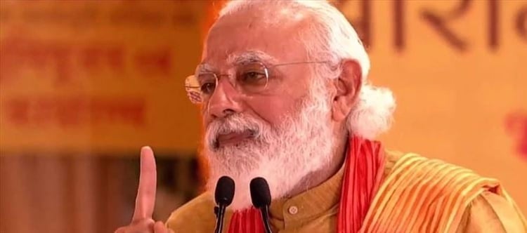 ১৯৯০ সালে লালকৃষ্ণ আডবাণী সোমনাথ থেকে অযোধ্যা পর্যন্ত রথযাত্রা শুরু করেছিলেন। পুরনো সেই সময়ের ছবিতে লৌহপুরুষ আডবাণীর পাশে ছিলেন তখনকার বিজেপি কার্যকর্তা নরেন্দ্র দামোদর দাস মোদী। আজ বুধবার সেই রামমন্দিরের সূচনার দিন তিনিই প্রধান মুখ। সে দিনের নেতৃত্বে থাকা লালকৃষ্ণ আডবাণী অনুষ্ঠানের অংশীদার হয়েছেন। তবে ভিডিয়ো কনফারেন্সে। সেই উপস্থিতি ছাড়া গোটা ‘ভূমিপূজন’ অনুষ্ঠান আবর্তিত হয়েছে নরেন্দ্র মোদীকে ঘিরেই। ৩০ বছর পর আজ বুধবার সেই নরেন্দ্র মোদীর হাতেই অযোধ্যায় সূচনা হল রামমন্দির নির্মাণের। মহা আড়ম্বড়ে অযোধ্যায় ৪০ কেজি ওজনের রুপোর ইট গেঁথে ভূমিপূজার মাধ্যমে রামমন্দির নির্মাণের সূচনা করলেন প্রধানমন্ত্রী। ‘নতুন ভারতে সূচনা হল নবযুগের’— বললেন সরসঙ্ঘচালক মোহন ভাগবত। যোগী আদিত্যনাথ ঘোষণা করলেন, প্রধানমন্ত্রী মোদীই পারেন অসম্ভবের শান্তিপূর্ণ সমাধান করতে। আর প্রধানমন্ত্রীর মুখে শুধুই রামচরিত। ঐক্য-সংহতির বার্তা। এ দিন বেলা ১১টা নাগাদ অযোধ্যার আকাশে মোদীর হেলিকপ্টার চক্কর কাটা শুরু করতেই কার্যত পুরো অযোধ্যা উচ্ছ্বাসে-উল্লাসে ফেটে পড়ে। বেলা ১১টায় সাকেত কলেজের মাঠে তাঁর কপ্টার নামার পরে সেখানে তাঁকে স্বাগত জানান উত্তরপ্রদেশের মুখ্যমন্ত্রী যোগী আদিত্যনাথ। এ বার সেখান থেকে প্রধানমন্ত্রী যান রামগঢ়ীতে হনুমান মন্দিরে পুজো দিতে। মন্দিরের পক্ষ থেকে তাঁকে বস্ত্র ও রুপোর মুকুট উপহার দেওয়া হয়। এর পর রামলালার দর্শন সারেন প্রধানমন্ত্রী। সেখান থেকে রাম জন্মভূমিতে। সেখান থেকে ঘড়ির কাঁটা মিলিয়ে শুভক্ষণ অনুযায়ী একে একে সমস্ত ধর্মীয় প্রথা-অনুষ্ঠান শেষে মূল মঞ্চে আসেন প্রধানমন্ত্রী।