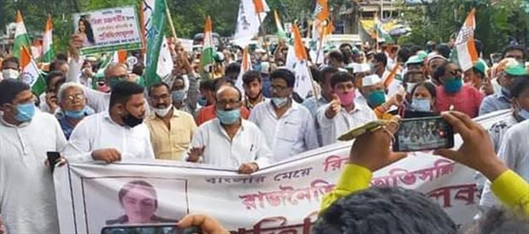 पार्टी ने ट्वीट किया, "पश्चिम बंगाल कांग्रेस के अध्यक्ष अधीर रंजन चौधरी के निर्देश पर प्रांतीय कांग्रेस कार्यालय से वेलिंगटन जंक्शन तक विरोध रैली निकाली गई।"