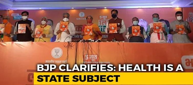 केंद्रीय वित्त मंत्री निर्मला सीतारमण ने भाजपा के घोषणापत्र की बिहार चुनाव के लिए घोषणा करते हुए कहा, "जैसे ही बड़े पैमाने पर उत्पादन के लिए COVID-19 वैक्सीन उपलब्ध होगा, बिहार के प्रत्येक व्यक्ति को यह टीकाकरण मिलेगा।"