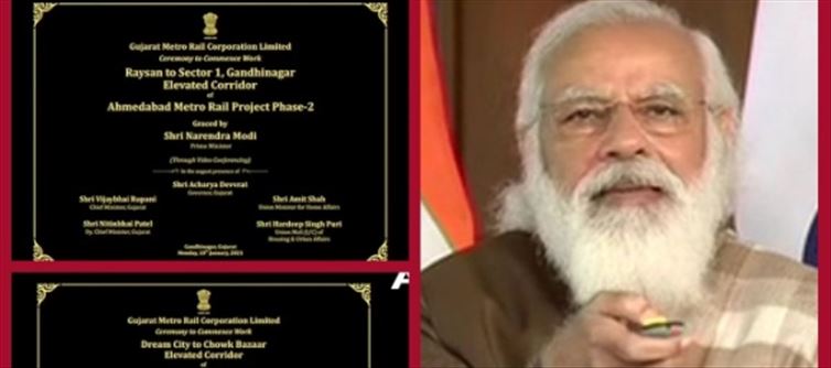 "आज गुजरात के दो प्रमुख शहरी केंद्रों के लिए एक ऐतिहासिक दिन है", प्रधान मंत्री ने भूमि पूजन समारोह में कहा। अहमदाबाद मेट्रो रेल परियोजना के द्वितीय चरण और सूरत मेट्रो रेल परियोजना के 'भूमि पूजन' पर वीडियो कॉन्फ्रेंसिंग के माध्यम से बोलते हुए, प्रधान मंत्री ने कहा कि पिछले छह वर्षों में 450 किमी से अधिक मेट्रो नेटवर्क चालू हो गया।