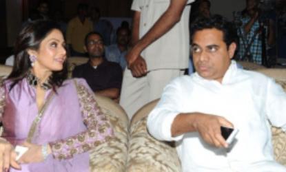 KTR seems busy posing for photos with Samantha and Sridevi. He is more interested to walk the ramp and enjoy life. He made his sister's wish to celebrate Bathukamma on a large scale and granted 10 crores for it. He also gave Sania Mirza 2 crores for her coaching to play better Tennis. OMG!