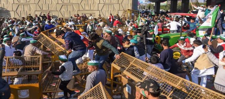 दिल्ली की सीमाओं पर अराजकता और हाथापाई के दृश्य सामने आए क्योंकि किसानों के समूहों ने बैरिकेड्स और पुलिस चौकियों को तोड़ दिया और अनुमत समय से पहले राष्ट्रीय राजधानी में प्रवेश किया। पुलिस ने समूहों को नियंत्रण में लाने के लिए दिल्ली के मुकरबा चौक, नांगलोई में आंसू गैस का इस्तेमाल किया। आईटीओ, अक्षरधाम में भी झड़पें हुईं।
