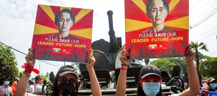 साथ में नव निर्वाचित जनप्रतिनिधियों को संसद के नए सत्र में हिस्सा लेने से रोक दिया था। समूचे म्यांमा में सोमवार को भी प्रदर्शन के लिए सड़कों पर उतरे। हालांकि रविवार रात को अधिकारियों ने प्रदर्शनों को नियंत्रित करने के लिए देश में इंटरनेट सेवा बंद कर दी और सुरक्षा कर्मियों की तादाद बढ़ा दी। देश के दूसरे सबसे बड़े शहर मंडाले में हजारों इंजीनियरों ने सड़कों पर मार्च किया, नारेबाजी की तथा वे हाथों में तख्तियां पकड़े हुए थे जिनमें लिखा था,, ‘‘हमारी नेता को रिहा करो’’, ‘‘न्याय के साथ कौन खड़ा है?’’ और ‘‘आधी रात में लोगों को अवैध तरीके से गिरफ्तार करना बंद करो।’’ यंगून में इंटरनेट सेवा बंद होने और सड़कों पर सैन्य वाहनों की मौजूदगी की वजह से सोमवार को कम प्रदर्शनकारी जुटे। फिर भी म्यांमा केंद्रीय बैंक के बाहर सैकड़ों प्रदर्शनकारी थे जहां सैनिकों से भरे सैन्य ट्रक, दंगा रोधी पुलिस और वॉटर कैनन ट्रैक तैनात थे। प्रदर्शनकारी हाथों में तख्तियां लिए हुए थे, जिस पर लिखा था, ‘‘सीडीएम (सविनय अवज्ञा आंदोलन) का समर्थन, म्यांमा बचाओ।’’ वरिष्ठ जनरल मिन आंग ह्लिंग ने कहा है कि सरकार पिछले साल हुए चुनाव में धांधली के आरोपों की जांच करने में नाकाम रही, जिस वजह से सेना को दखल देना पड़ा। इस चुनाव में सू ची की नेशनल लीग फॉर डेमोक्रेसी पार्टी की जबर्दस्त जीत हुई थी। हालांकि, चुनाव आयोग ने किसी भी धांधली से इनकार किया है।