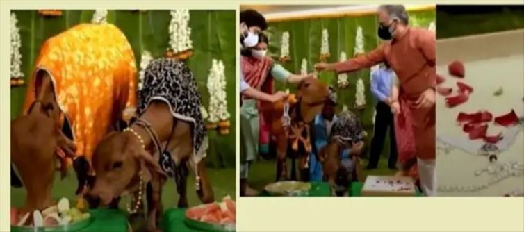 ఇంతకీ ఆ యజమాని చేసిన పని ఏంటో తెలుసా మనుషులు ధరించే బంగారు ఆభరణాలు, వెండి వస్తువులను ఆవులకు చేయించి ఆవుల మెడలో వేసి ఆవుల పట్ల తనకు ఉన్న ప్రేమను చాటుకున్నాడు. ఆ తరువాత ఆవులపై గులాబి పూల వర్షాన్ని కురిపించాడు.అసలు వివరాలలోకి వెళ్తే.. గుజరాత్కు చెందిన విజయ్ పర్సానాకు ఓ ఆవు ఉంది.ఆ ఆవును ఎప్పటినుంచో ప్రేమగా చూసుకుంటూ వస్తున్నాడు. అయితే ఆ అవుకు ఒక దూడ పుట్టింది. రెండింటిని కూడా ఎంతో ప్రేమగా చూసుకుంటాడు విజయ్ పర్సానా. ఎంత ప్రేమంటే వాటికి ఏకంగా బంగారు, వెండి నగలు చేయించాలని భావించాడు.