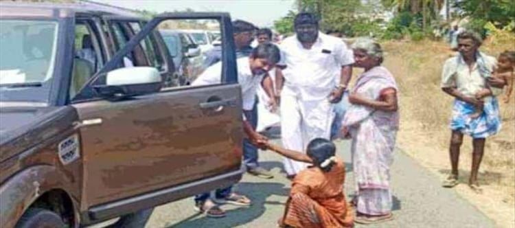 Now, a similar incident has happened. Udhayanidhi who was campaigning at salem happened to see a disabled woman in the middle of the road with flowers on her hand. The woman was physically challenged and she lost both her legs. Udhayanidhi who saw her stopped the convoy and got down from his car. He accepted her reception and talked with her for few minutes. This made the disabled woman so happy.
