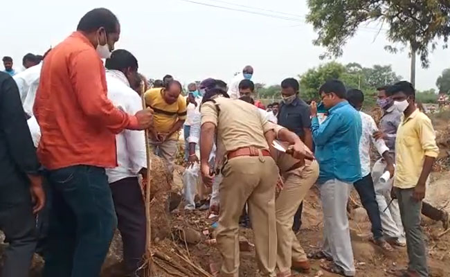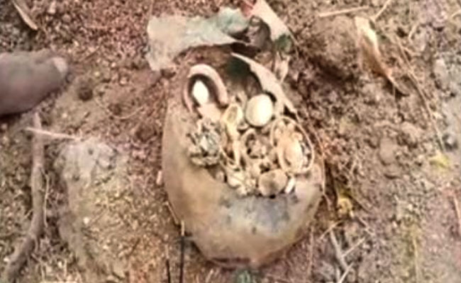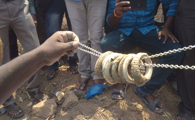 నరసింహ అనే వ్యక్తి నెలరోజుల క్రితం రియల్ ఎస్టేట్ వెంచర్ కోసం స్థానికంగా 11 ఎకరాల భూమి కొనుగోలు చేశాడు. ఈ క్రమంలో ప్రొక్లెయిన్ తీసుకువచ్చి భూమిని చదును చేస్తున్న సమయంలో ఆటంకం ఏర్పడగా, కాస్త తవ్వి చూడటంతో లంకె బిందె వెలుగుచూసింది.