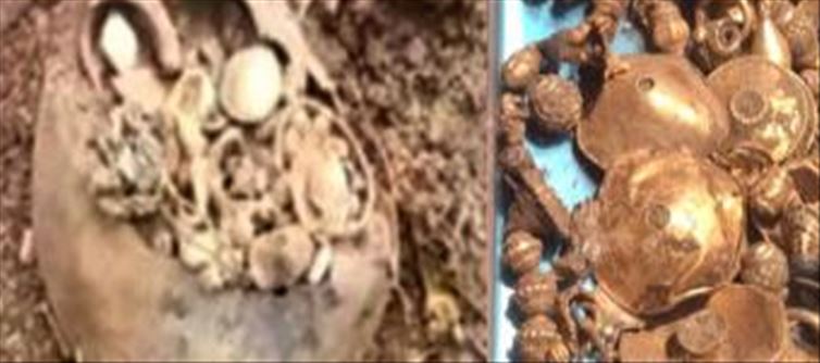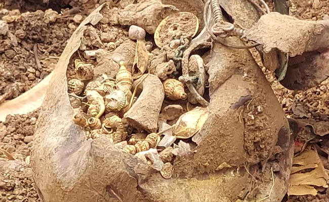 ఇందులో సుమారు 5 కిలోల బంగారు ఆభరణాలు ఉన్నట్లు తెలుస్తోంది. ఇవన్నీ దేవతా మూర్తులకు అలంకరించినవని భావిస్తున్నారు.కాగా సమాచారం అందుకున్న పోలీసులు ఘటనాస్థలికి చేరుకున్నారు. ఇక పెద్ద మొత్తంలో