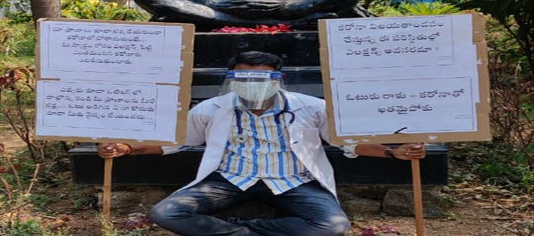 ప్లకార్డు పట్టుకుని ఓటుకు రాకు కరోనా వైరస్ తో ఖతం అయిపోకు అంటూ నిరసన తెలిపాడు. ఓవైపు కరోనా వైరస్ విలయ తాండవం చేస్తూ ఉంటే ఈ సమయంలో ఎన్నికలు అంత ముఖ్యం అయ్యా అంటూ ప్రశ్నించాడు. మీమందరం ప్రాణాలను లెక్కచేయకుండా కరోనా వైరస్ తో పోరాటం చేస్తూ ఉంటే మీ స్వార్థం కోసం ఎన్నికల నిర్వహించి తద్వారా ఎంతో మందిని బలి తీసుకోవడం మంచిదేనా అంటూ ప్రశ్నించాడు . అయితే ఇక ఈ వైద్యుడు నిరసన చూసి ఇది నిజమే కదా అని అనుకుంటున్నారు అందరు. మరి ఈ వైద్యుడు చేసిన నిరసన రేపు మున్సిపల్ ఎన్నికల పోలింగ్ పై ఎంత ప్రభావం చూపుతుంది అన్నది ఆసక్తికరంగా మారిపోయింది.