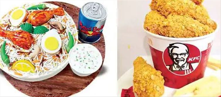 అందుకే, ఈ తరహా బిర్యానీ, నూడిల్స్, ఇడ్లీ, రక రకాల వంటలను పోలిన కేకులని తయారు చేస్తున్నారు.. వాడికి డిమాండ్ కూడా బాగానే ఉంటుంది. హైదరాబాద్తో పాటు దేశవ్యాప్తంగా నిపుణులైన బేకర్స్ ఈ తరహా కేకుల్ని తయారు చేస్తున్నారు. దీనికోసం ముందుగా కేకుని కావాల్సిన ఆకారంలో చేసి దానిమీద ఐసింగ్తోనే ఈ రూపాలన్నిటినీ కనపడేలా తయారు చేస్తున్నారు.బిర్యానీ మెతుకుల్నీ విడిగా చేస్తారు. చికెన్ లెగ్పీస్లనూ, జీడిపప్పూ ఉల్లిపాయలాంటి వాటినీ పంచదార పేస్టుతోనే చేసి, ఆపైన ఎడిబుల్ రంగులతో అవి సహజమైన వాటిలా కనిపించేలా రంగులద్దుతారు.. మొత్తానికి ఈ కేకులు ఇప్పుడు హాట్ టాపిక్ అయ్యాయి.. ఎంతగా ఆ కేసులు ఆకర్షిస్తున్నాయి అనేది ఈ ఫొటోలో ఒకసారి చూడండి..