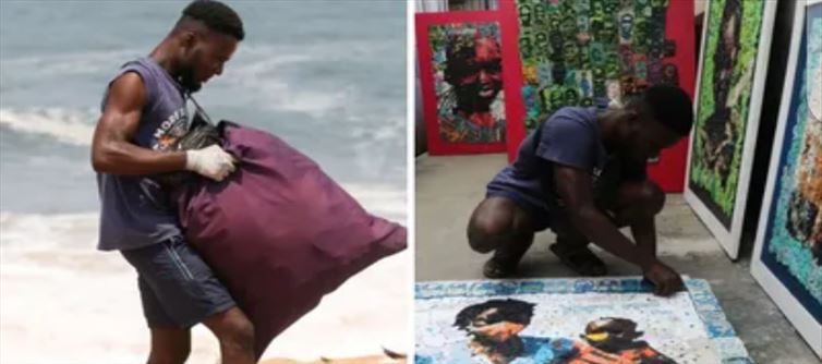 అసలు వివరాల్లోకి వెళితే.. 26 సంవత్సరాల అరిస్టైడ్ కౌమే అనే ఒక కళాకారుడు అరిస్టైడ్ బీచులలో సముద్రపు అలల వెంట కొట్టుకొచ్చిన పాత చెప్పులు, బూట్లను ఏరుకునేవాడు. అయితే అతన్ని చూసి అక్కడ ప్రజలు అతన్ని పిచ్చివాడిలాగా భావించారు.కానీ అతనే ఇప్పుడు ఒక స్టార్ లాగా మారిపోయాడు.ఆ చెప్పులతో కళాకండాలు తయారుచేసి వాటిని అమ్ముతున్నాడు. ఈ సృష్టిలో పనికిరానిది అంటూ ఏమి లేదు. మనసు పెట్టి ఆలోచిస్తే పనికిరానివాటితో కూడా ఎదో ఒకటి తయారుచేయవచ్చు. అలాగే నేను ఈ పనికిరాని వస్తువులకు ఆర్ట్ వర్క్ ద్వారా ఒక మంచి జీవితాన్ని ఇచ్చాను అని ఆయన అంటున్నాడు. అలాగే ఇలా చేయడం వలన పర్యావరనాన్ని కూడా ప్లాస్టిక్ అనే భూతం నుంచి రక్షించవచ్చని అంటున్నాడు.ఇంకో ముఖ్య విషయం ఏంటంటే ఈ యువకుడు ప్రతిభను, అతని కళాకృతులను ఐవరీ కోస్ట్ కళా సంస్థ గుర్తించింది. అల అతడి ఆర్ట్ వర్క్స్ ను అంతర్జాతీయ స్థాయిలో గుర్తింపు సంపాదించుకున్నాయి.