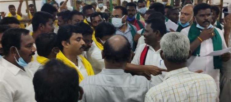 As a result, within 10 minutes of the beginning of the vote counting, the DMK and AIADMK, who had assembled at the counting centre, pushed each other, began arguing, and attacked each other. As a result, there was a commotion. As a result, the counting of votes was halted, and riot police were dispatched. After that, after a half-hour break, the vote counting proceeded.