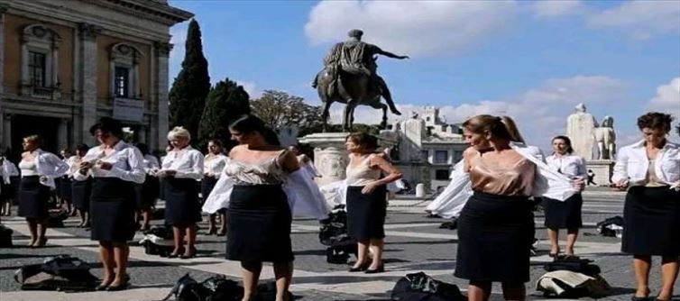 ఇటలీలో అలిటాలియా ఎయిర్ లైన్స్కు చెందిన 50 మంది ఎయిర్ హోస్ట్లు అర్ధనగ్నంగా నిరసన చేపట్టారు. రోమ్ నగరంలోని టౌన్ హాల్ ముందు తమ యూనిఫాంలు విప్పి ఆందోళన నిర్వహించారు. జీతంలో కోతలు, ఉద్యోగాలు తొలగించడంపై మనస్తాపం చెందినట్టు తెలుపుతున్నారు ఉద్యోగులు. చాలా మంది ఉద్యోగులను పక్కకు పెట్టడంతో ఏటీఏపై ఆగ్రహం వ్యక్తం చేస్తూ నిరసనకు దిగారు. ఐటిఏ ఎయిర్వేస్ ప్రెసిడెంట్ ఆల్ఫ్రెడో అల్టావిల్లా స్పందిస్తూ.. ఉద్యోగులందరూ కంపెనీ నిబంధనలను అనుసరించి ఒప్పందంపై సంతకం చేశారు. ఉద్యోగులు సమ్మె చేస్తారని నేను అసలు భావింలేదు. అలా చేస్తే వారిపై తీవ్ర ప్రభావం ఉంటుందని ఆయన మీడియాకు వెల్లడించారు.