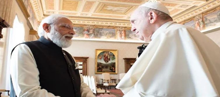 पीएम मोदी 2013 में पोप बनने के बाद से पहले भारतीय प्रधान मंत्री फ्रांसिस से मिले हैं। वेटिकन में, मोदी के साथ राष्ट्रीय सुरक्षा सलाहकार अजीत डोभाल और विदेश मंत्री एस जयशंकर थे।