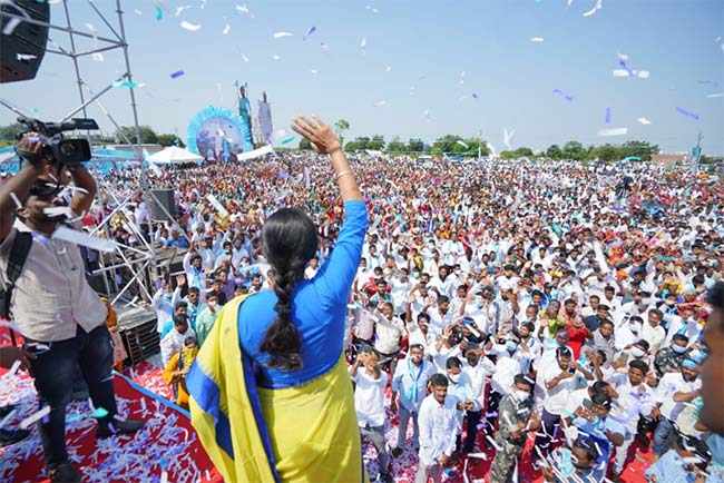 Sharmila's campaign march went on in Chanduru and Munugod of Nallagonda district on Sunday. Farmer Ramachandran's farm in Taskanigudem, Chanduru zone, harvested rice and learned the pros and cons.