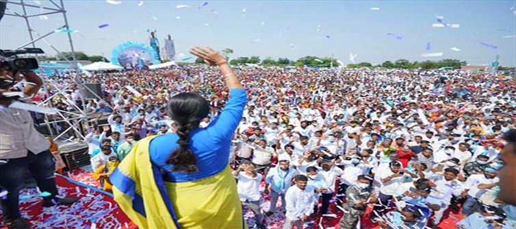 Afterwards, the trek to the front wall zone continued. The trs regime came under fire at a meeting held at Munugod Ambedkar Chowrasta.