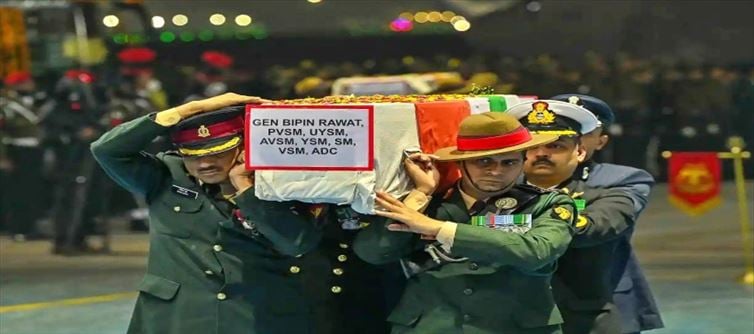 जब तक सूरज चंद रहेगा बिपिन जी का नाम रहेगा के नारों के बीच, 8 दिसंबर को एक सैन्य हेलिकॉप्टर दुर्घटना में अपनी जान गंवाने वाले चीफ ऑफ डिफेंस स्टाफ (सीडीएस) जनरल बिपिन रावत के पार्थिव शरीर को दिल्ली के बरार स्क्वायर श्मशान में लाया गया है। छावनी जहां उनका अंतिम संस्कार किया जाएगा।