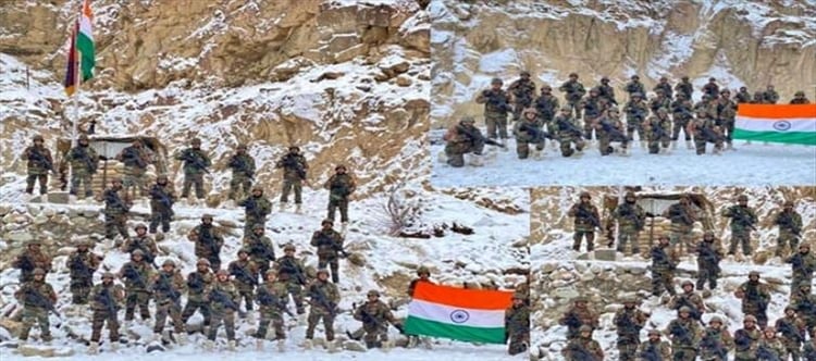 भारतीय सुरक्षा प्रतिष्ठान के सूत्रों द्वारा जारी एक तस्वीर में, लगभग 30 भारतीय सैनिकों को राष्ट्रीय ध्वज के साथ देखा गया था। एक अन्य तस्वीर में समूह को दिखाया गया है जिसमें चार राष्ट्रीय ध्वज पकड़े हुए हैं और एक अन्य तिरंगा एक अस्थायी अवलोकन चौकी पर उड़ रहा है। सूत्रों ने बताया कि तस्वीरें एक जनवरी की गलवान घाटी की हैं।